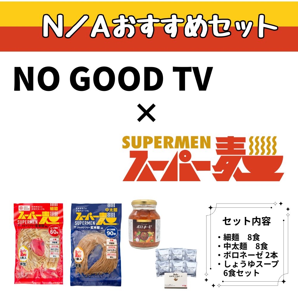 【NGTVコラボ】N/Aおすすめセット(細麺・中太麺各8食+ボロネーゼ2本+しょうゆスープ1セット)9,000円 (税込) -