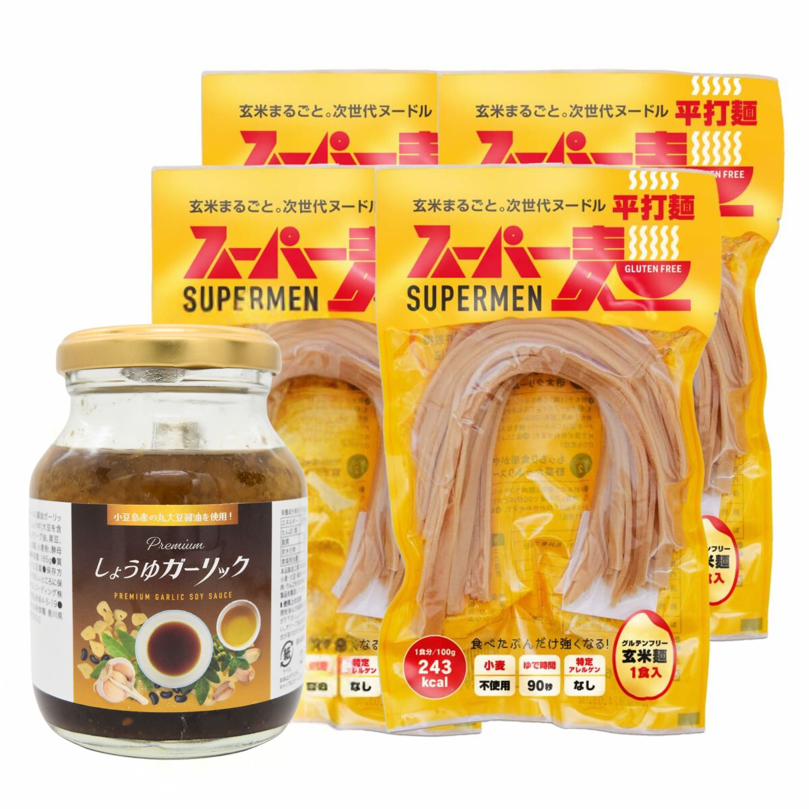 スーパー麺 平打麺4食 & Premiumしょうゆガーリック セット
