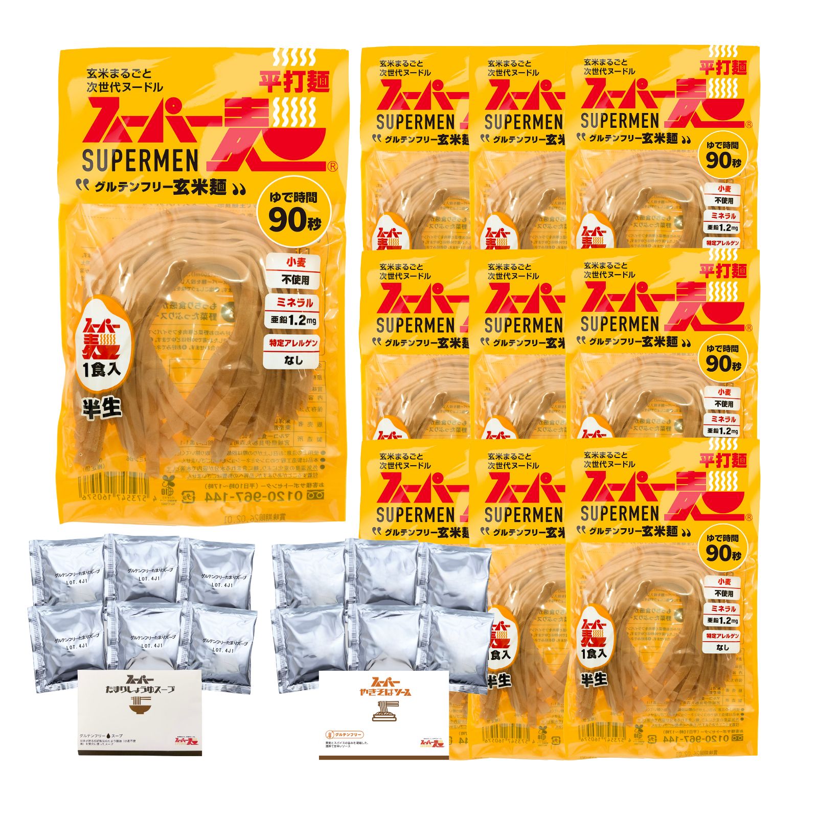 スーパー麺 平打麺10食 +選べる!①スーパーたまりしょうゆスープ6食 ②スーパーやきそばソース6食