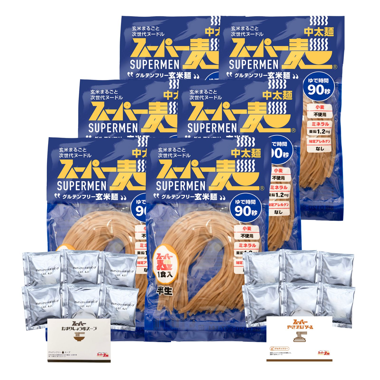 スーパー麺 中太麺6食 +選べる!①スーパーたまりしょうゆスープ6食 ②スーパーやきそばソース6食